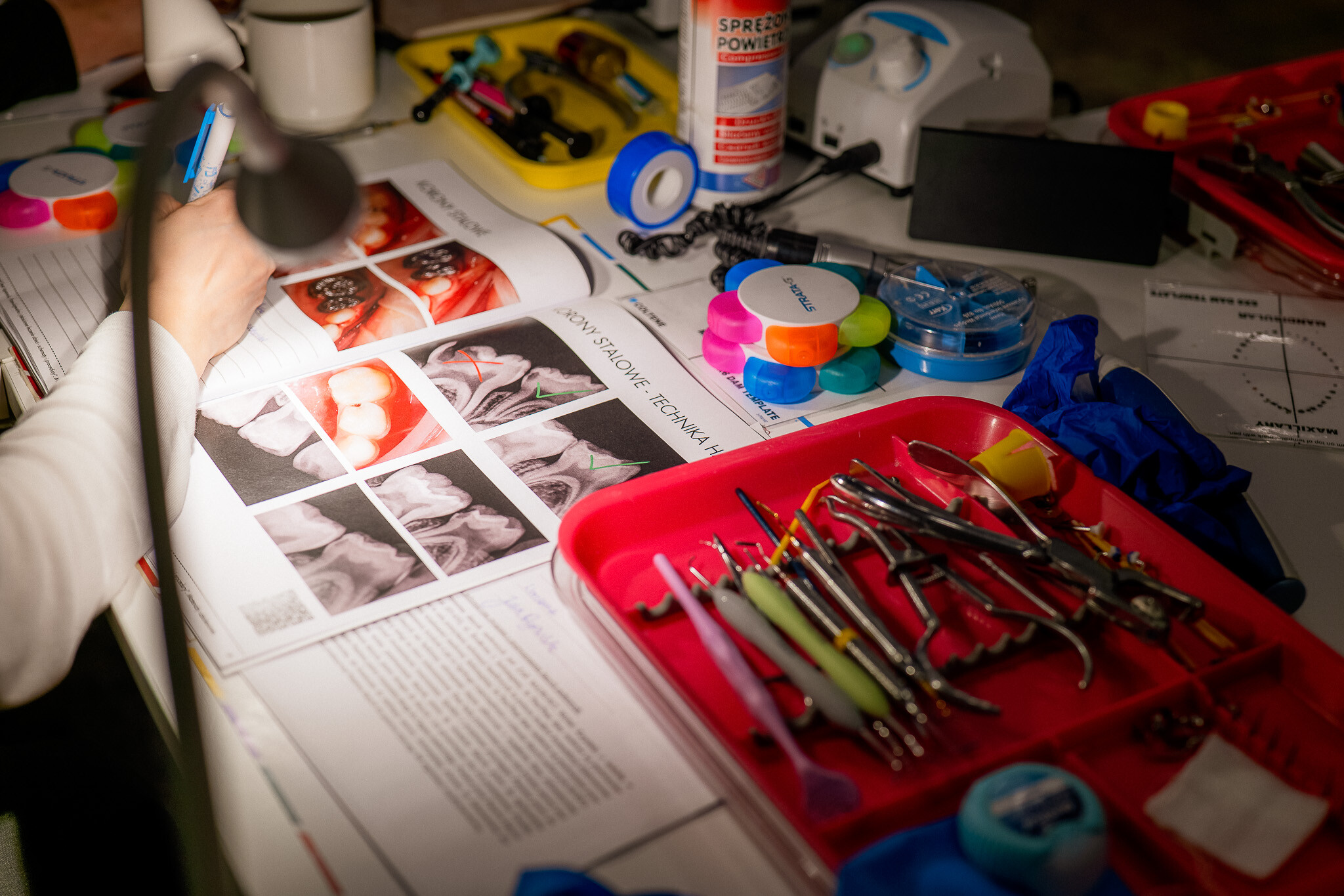 - zakładanie koferdamu na zęby mleczne i pierwsze trzonowce
